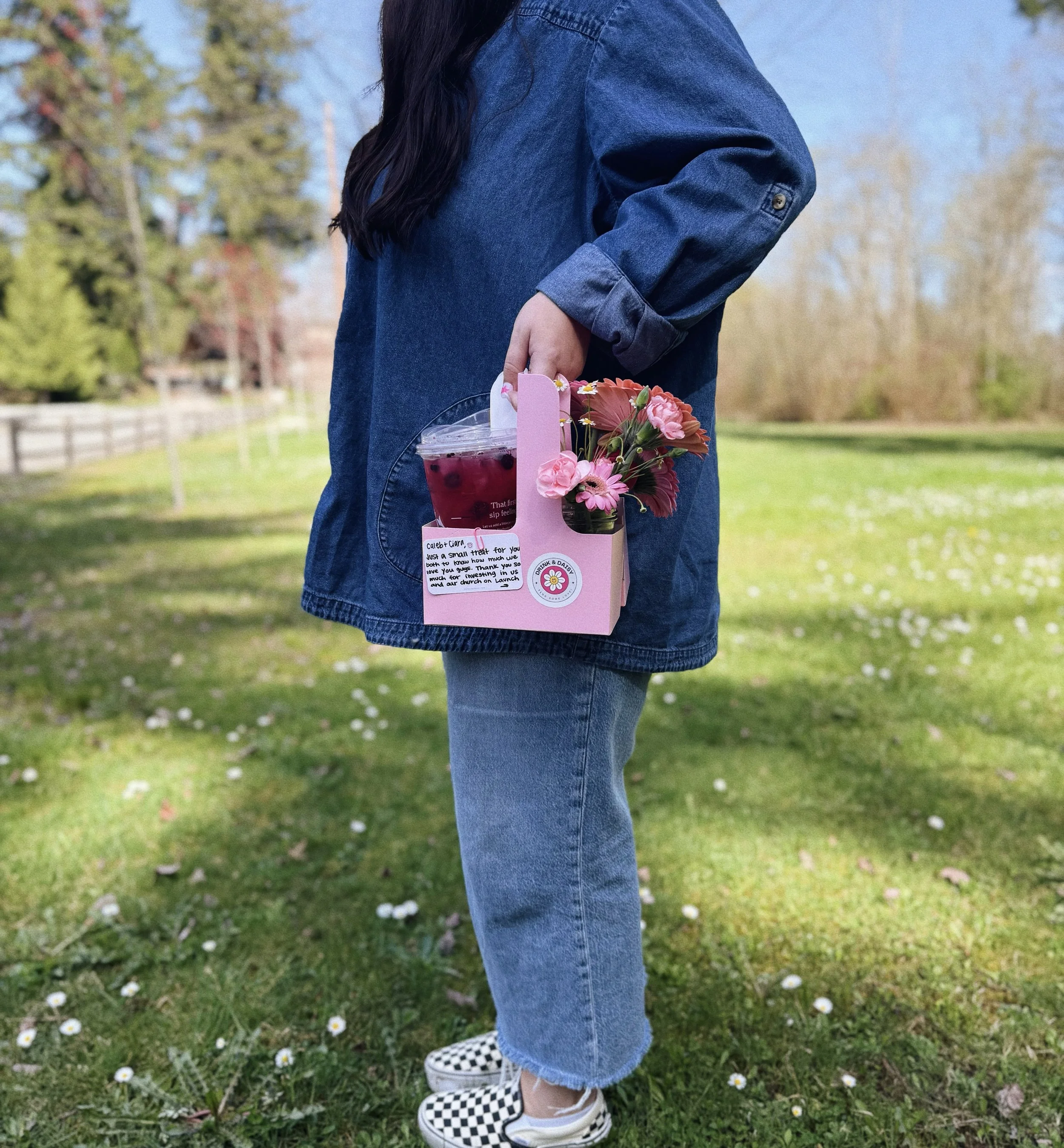 Our Why Thank you for choosing Drink & Daisy. Our hope is to make a good day even better, or a sad day a little sweeter, by providing fresh blooms and favorite drinks for your favorite people! Serving King County and Snohomish County in Washington State. Favorite Drinks * Favorite Drinks * Favorite Drinks * Each order includes a “favorite” beverage from the location of your choice. Any drink, any place! Fresh Blooms * Fresh Blooms * Fresh Blooms * Your Drink & Daisy order includes a beautiful and unique, small bouquet of fresh flowers.